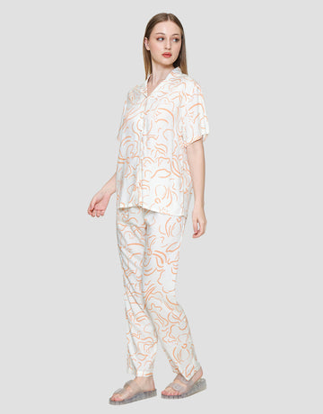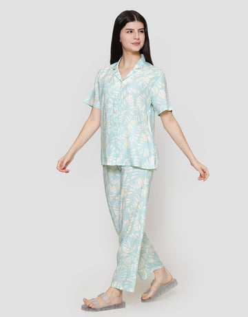 Nevada Mix Leaf Print Setelan Piyama Wanita