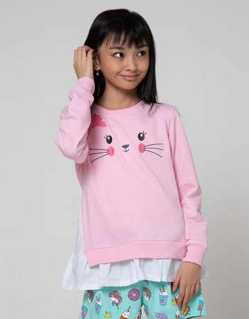 Aero Long Sleeve Meow Bottom Ruffle T-Shirt