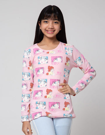 Aero Long Sleeve T-Shirt Print Anime Girl Braids