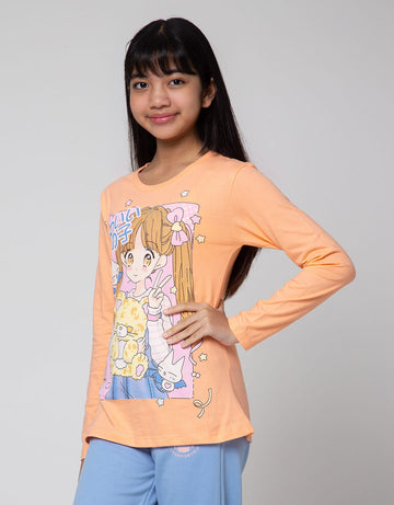 Aero Long Sleeve T-Shirt Print Anime Girl Bear