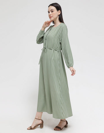 Anyday Long Sleeve Maxi Dress Stripe Print With Belt