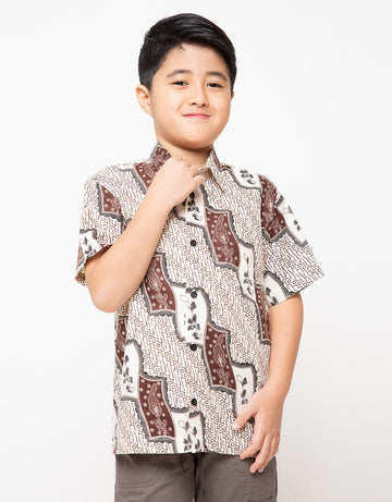 Arjuna Weda Children's Batik Shirt Kawung Baris