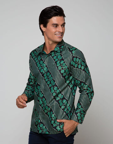 Adikusuma Men's Body Fit Shirt Batik Keladi Leaf