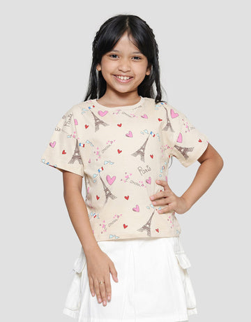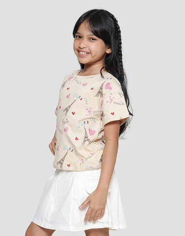 Aero Bonjour Paris Print Girls Short Sleeve T-Shirt