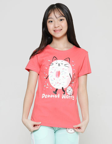 Aero Short Sleeve T-Shirt for Girls, Dessert Donutworry Print