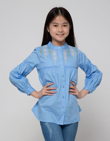 Aero Short Sleeve Woven Shirt Blues Bear Ruffle Collar