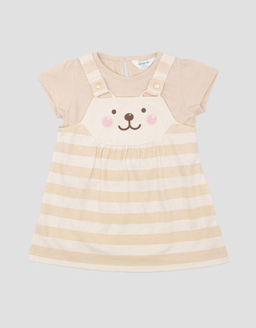 Little M Icon Bear Stripe Midi Dress Anak Perempuan