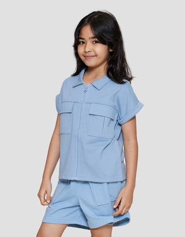 Little M Zipper Kantong Kargo Kemeja Anak Perempuan