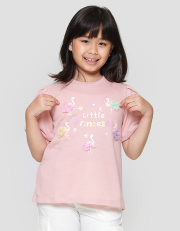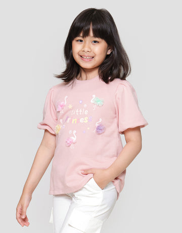 Little M Lengan Balon Aplikasi Flamingo Kaos Anak Perempuan