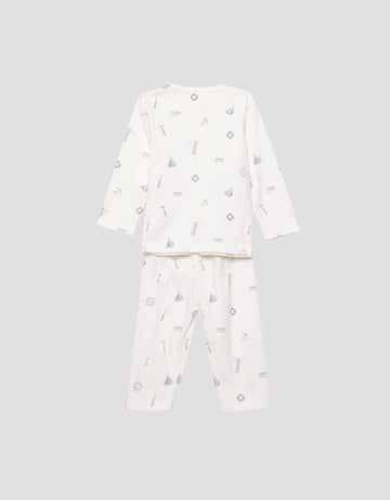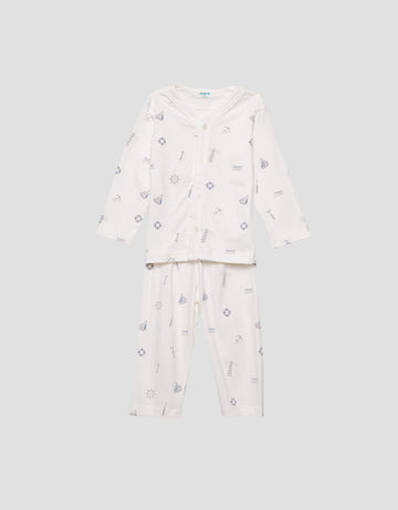 Little M V-Neck Fullprint Ship Setelan Piyama Anak Laki-laki