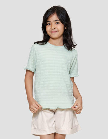 Little M Teksture Ujung Neci Polos Kaos Anak Perempuan