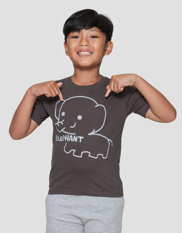 Little M Elephant Outline Print Kaos Lengan Pendek Anak Laki-laki