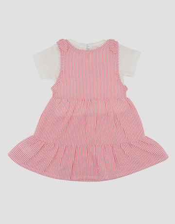 Little M 2Pcs Overall Woven Stripe Mix Knitt Midi Dress Bayi