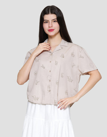 Disney Woven Boxy Print Aop Winnie The Pooh Kemeja Wanita