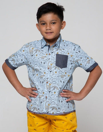 Little M Short Pants Knit Terry Fullprint Dino Twilltape Rib