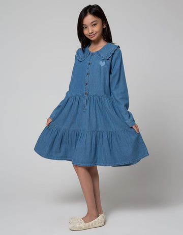 Nevada Long Sleeve Midi Dress Denim Skirt Geber