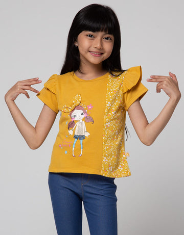Little M Short Sleeve T-Shirt Ruffle Non Side Print Flower