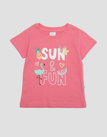 Pipiniko Fun And Sun Print Girls Short Sleeve T-Shirt