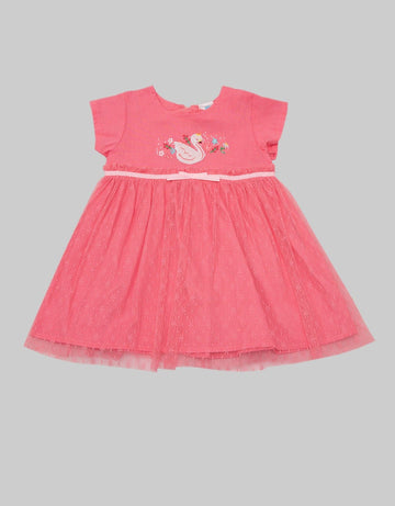 Pipiniko Short Sleeve Floral Tulle Midi Dress