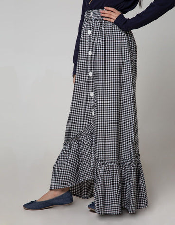 Nevada Kids Maxi Skirt Print Check Unbalance Ruffles