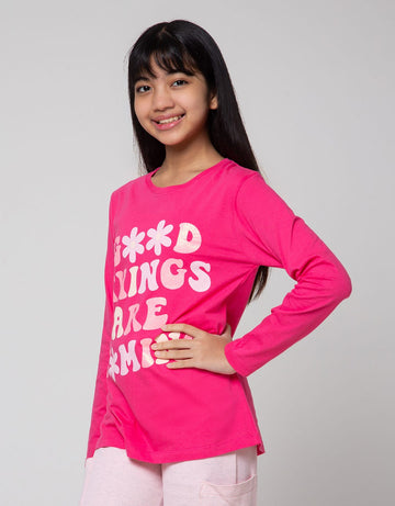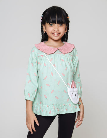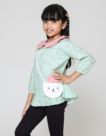 Little M Girls Long Sleeve Blouse Rabbit Bag Print