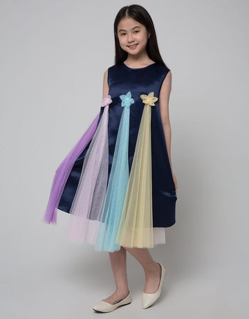 Aero Denim Unicorn Embroidery Midi Dress for Girls