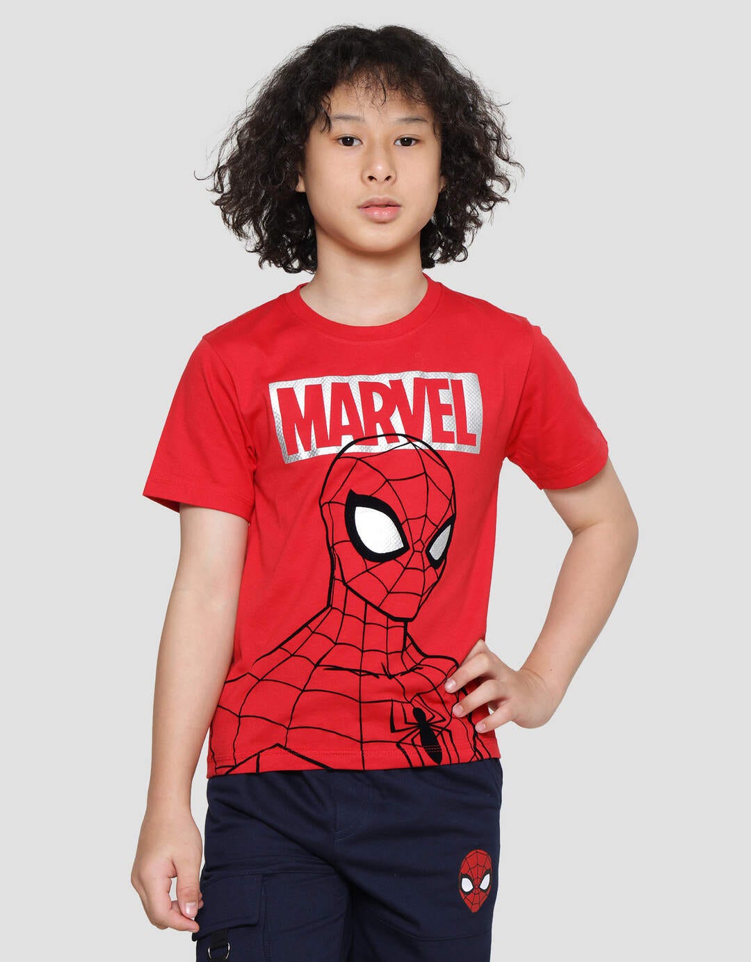 Marvel Spiderman Outline Flocking Boys Short Sleeve T-Shirt