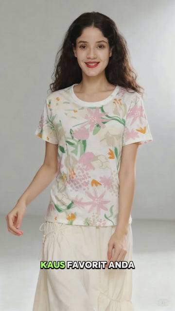 Connexion Full Print Flowers Kaos Lengan Pendek Wanita