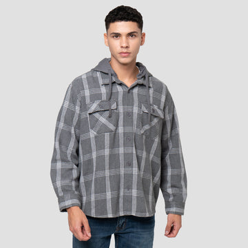 Nevada Woven Detachable Hoodie Checked Jaket Pria