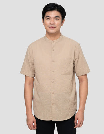 Suko Seersucker Kerah Tegak Kemeja Koko Pria