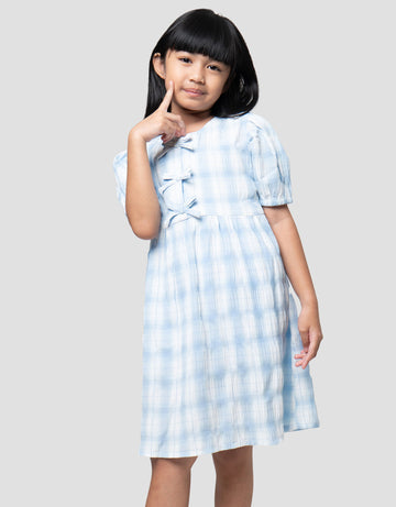 Little M Kotak-Kotak Pita Dress Anak Perempuan