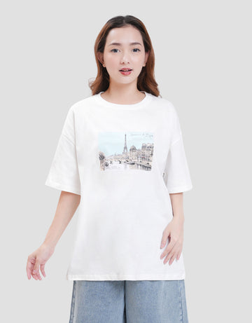 Nevada Solid Comb Eiffel Dreams Kaos Oversize Wanita