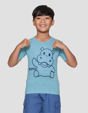 Little M Hippo Outline Print Kaos Lengan Pendek Anak Laki-laki
