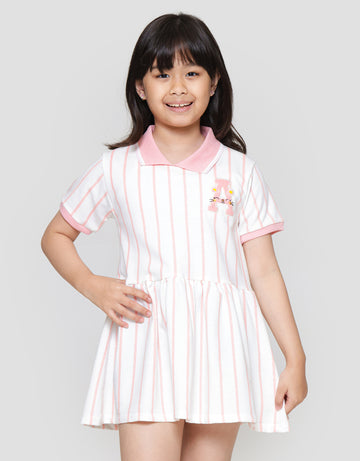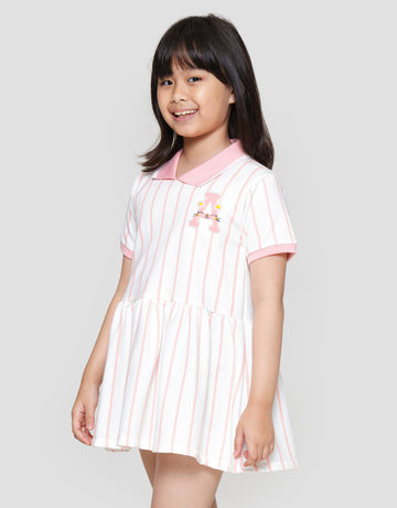 Little M Salur Bordir Dress Lengan Pendek Anak Perempuan