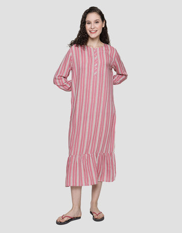 Connexion Long Sleeve Midi Dress Rayon Print Stripe Strap