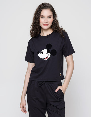 Disney Short Sleeve T-Shirt Boxy Print Mickey Woven Label