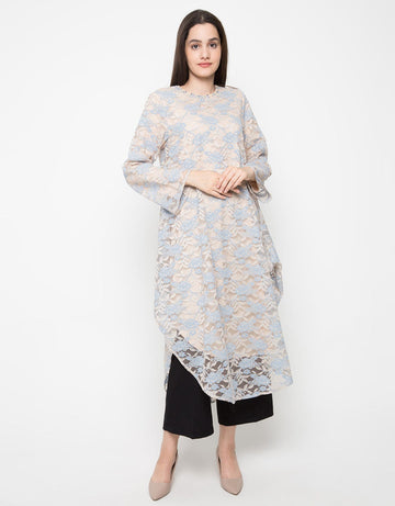 St. Yves Short Sleeve Blouse Lyonne Creepe With Lace And Metal Trims Detaling