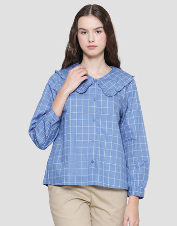 Annisa Long Sleeve Blouse Basic Shanghai Collar Check
