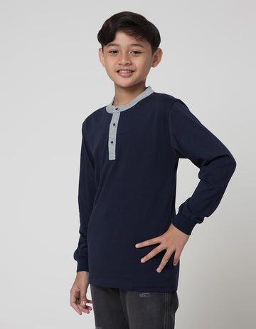 Nevada Long Sleeve T-Shirt Henley Solid Navy List