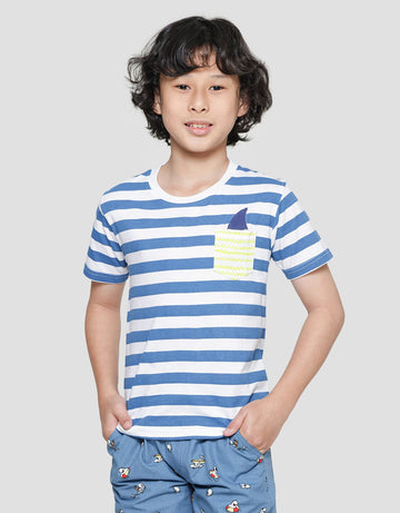 Little M Stripe Pocket Fin Applique Boys Short Sleeve T-Shirt