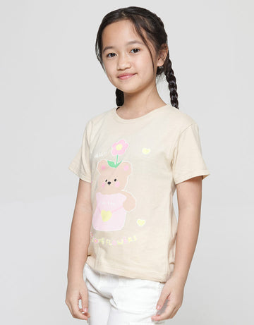 Little M Print Bear Girls Short Sleeve T-Shirt
