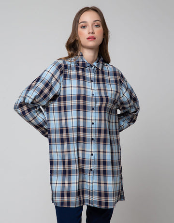 Nevada Women's Long Check Rayon Twill Woven Top Shirt