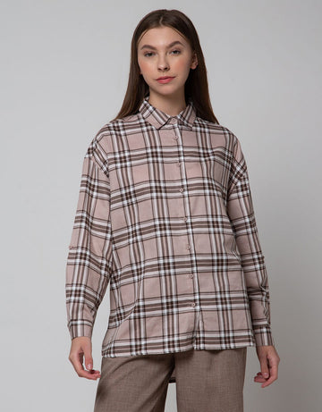Nevada Woven Top Boxy Check Women's Long Sleeve Shirt