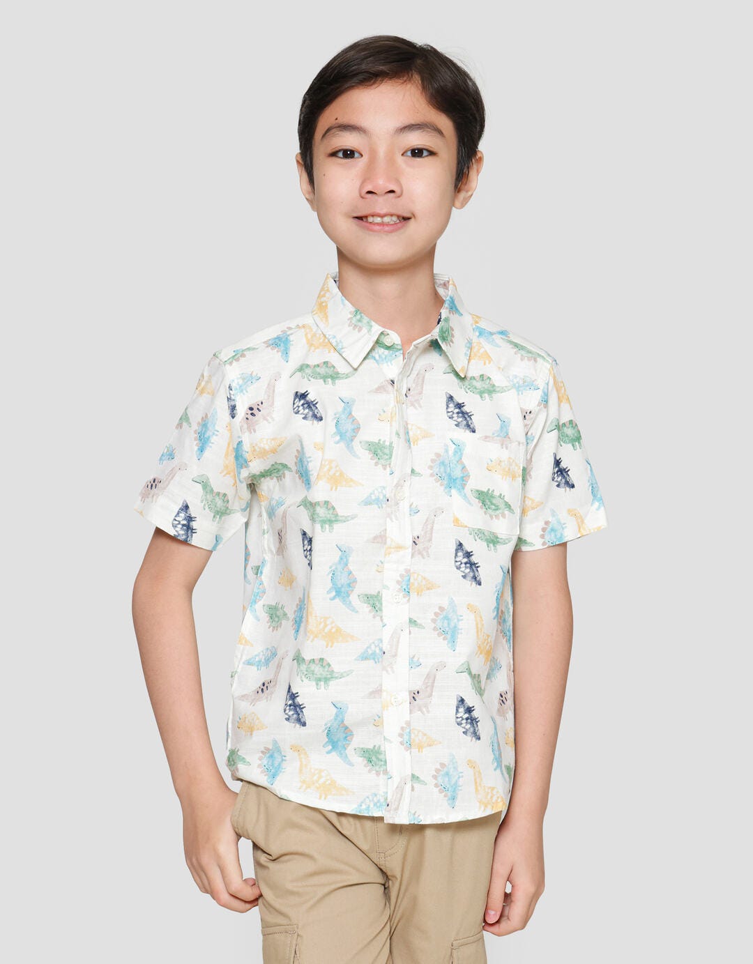 Little M Solid Crincle Boys Short Sleeve Shirt