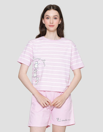 Disney Boxy Stripe Print Marie The Cat Women's Short Sleeve T-Shirt