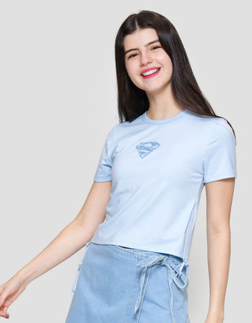 Nevada Baby Tee Spandex Tie Side Print Superman Kaos Wanita