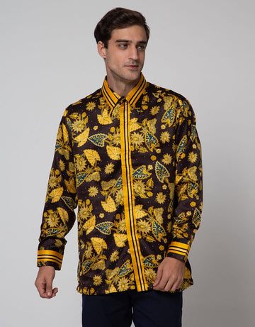 Adikusuma Men's Body Fit Shirt Batik Keladi Leaf