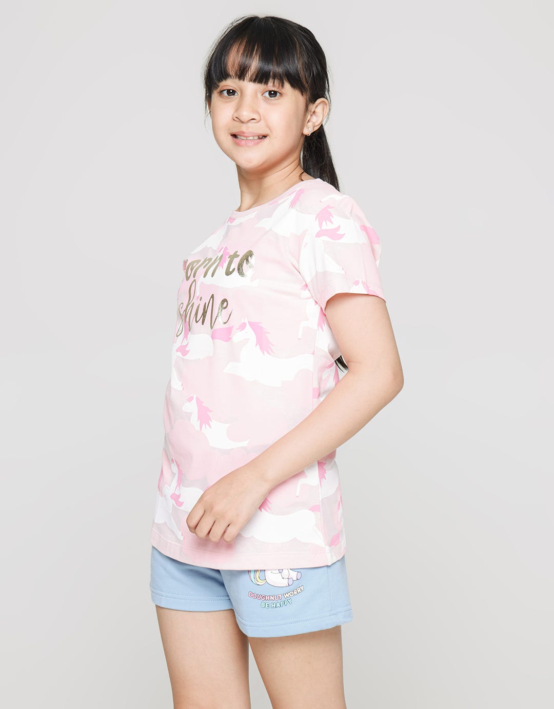 Girls' T-shirts to make your little one's appearance more charming. With a casual and simple model, suitable to be combined with various bottoms that children like. With simple print details and quality materials, it will be comfortable to wear all day long.