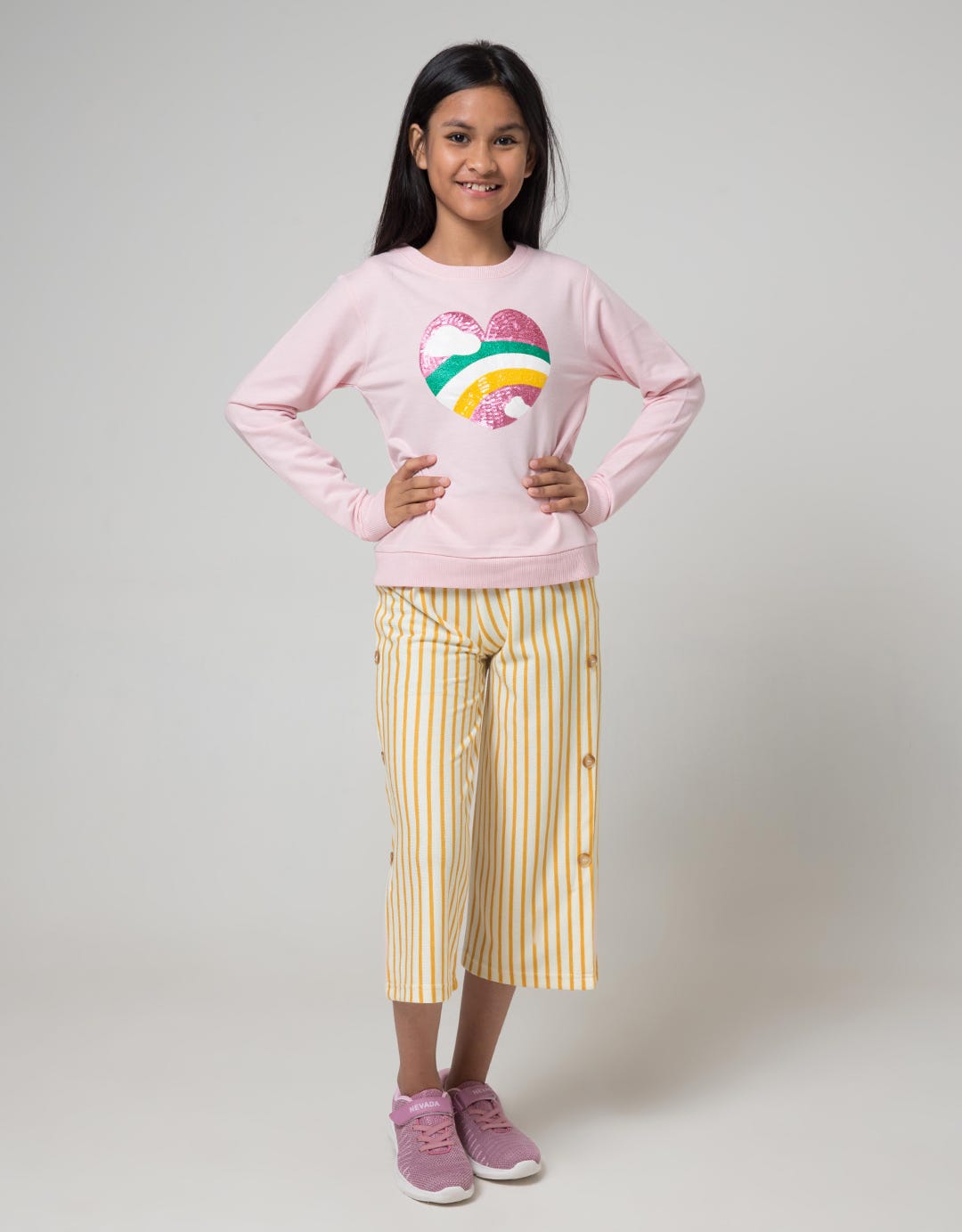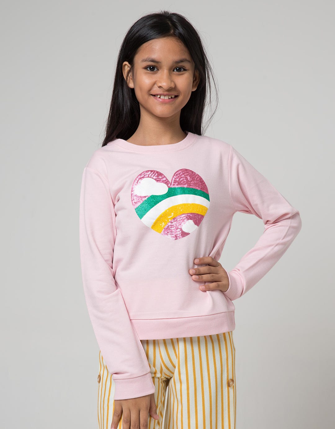 Aero Kids Long Sleeve T-Shirt Kindergarten Heart With Rainbow Sequins