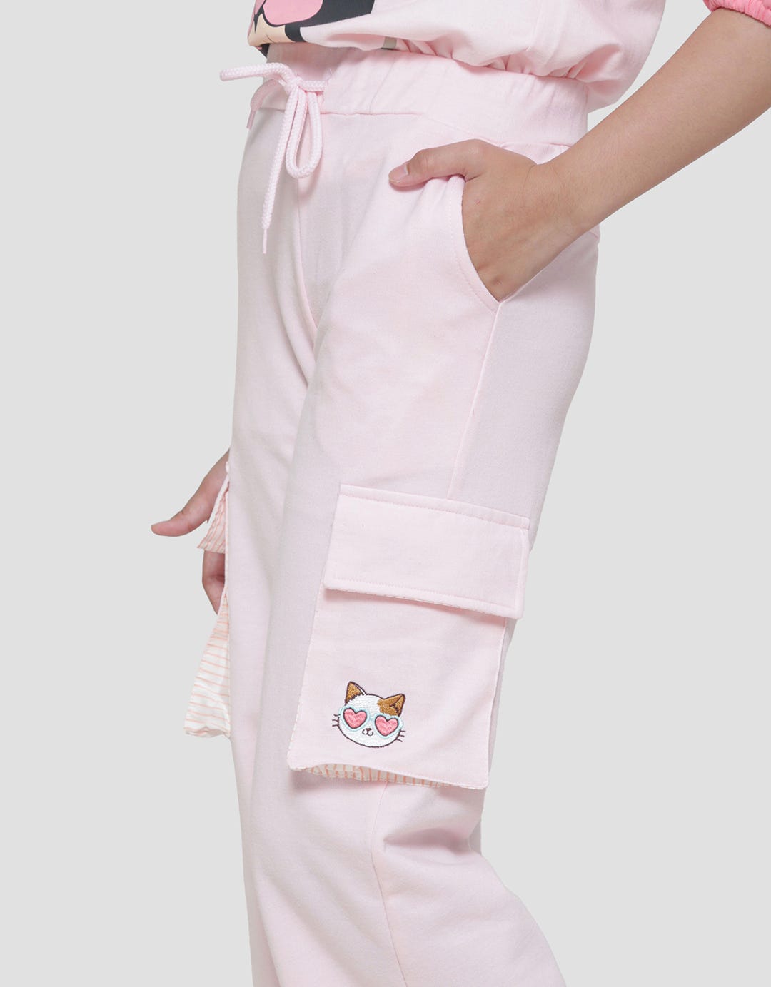 Aero Knit Wide Leg Cat Embroidery Glasses Girls Long Pants